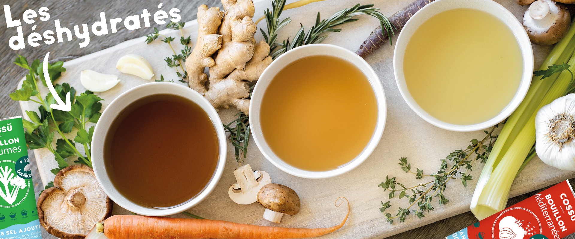 La grande innovation de Cossû, c’est sa gamme de bouillons déshydratés, pensée pour la cuisine du quotidien. Ils sont fabriqués en Charente, grâce à un procédé de séchage basse température qui préserve les nutriments des légumes.